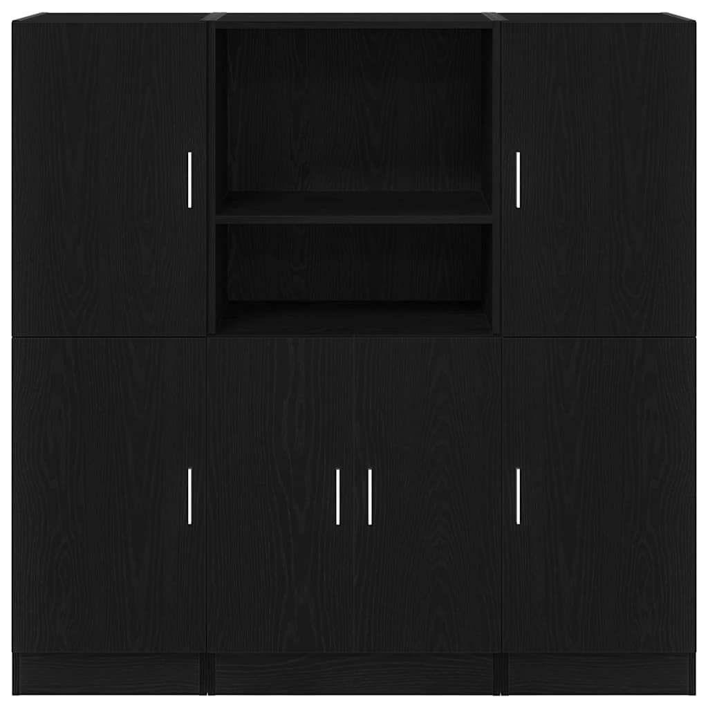 3dalių virtuvės spintelių komplektas, juoda inžinierinė mediena