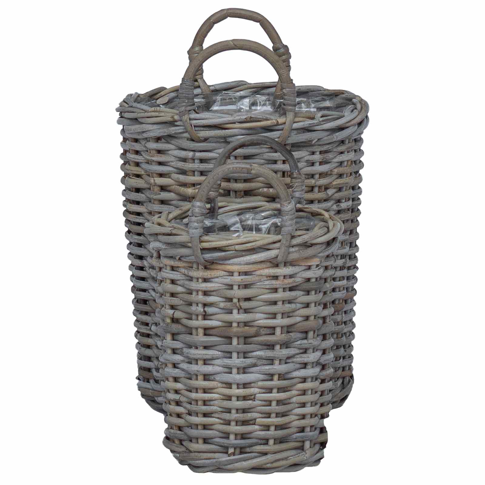 - Vandeniui atsparus vidinis pamušalas: Kiekviename krepšyje yra nuimamas plastikinis pamušalas, apsaugantis nuo drėgmės ir išsiliejimų. Ši funkcija puikiai tinka puodų augalams, nes ji apsaugo tiek krepšio medžiagą, tiek paviršių po juo.