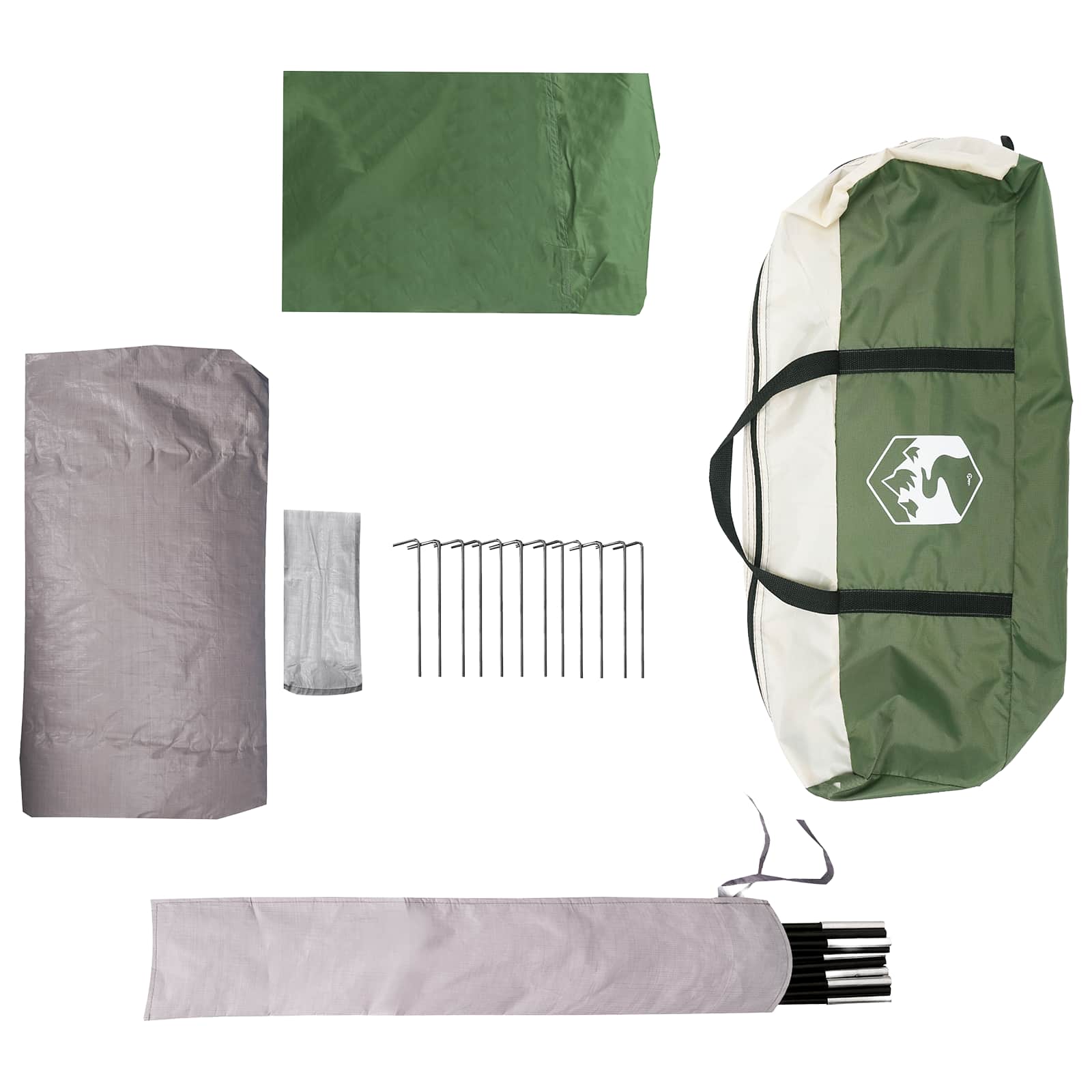- Įtraukti būtini komponentai: Kiekviename pakete rasite nuimamą lietpalvį, patikimus stiklo pluošto polių, 6 tempimo virves ir 12 kuoliukų, viską patogiai supakuota. Tai palengvina jūsų kelionę ir palapinės statybą.