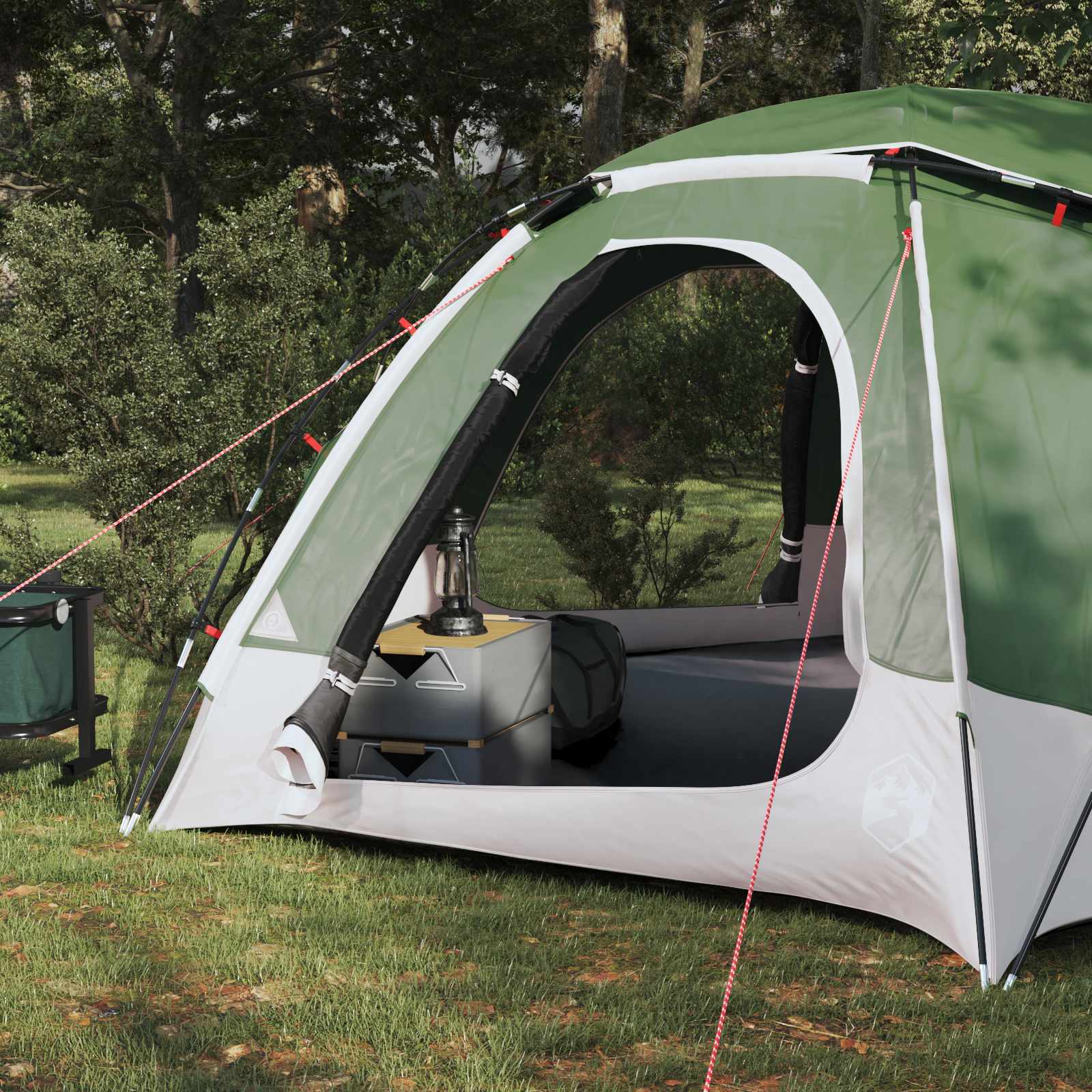 Kupolo palapinė su nuimamu lietaus skydeliu Žalia 4 asmenims