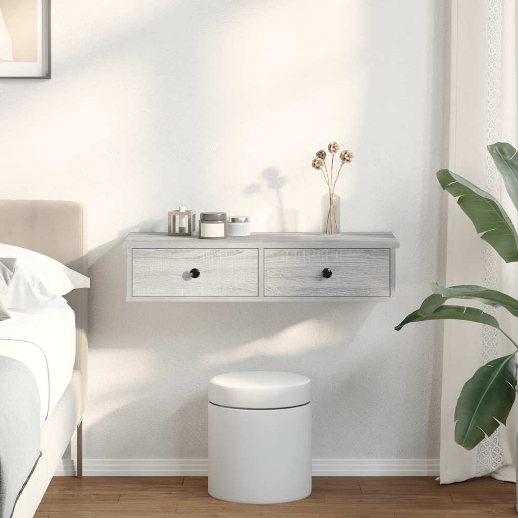 Sieninė lentyna su stalčiais, pilka ąžuolo, 80x34x17cm
