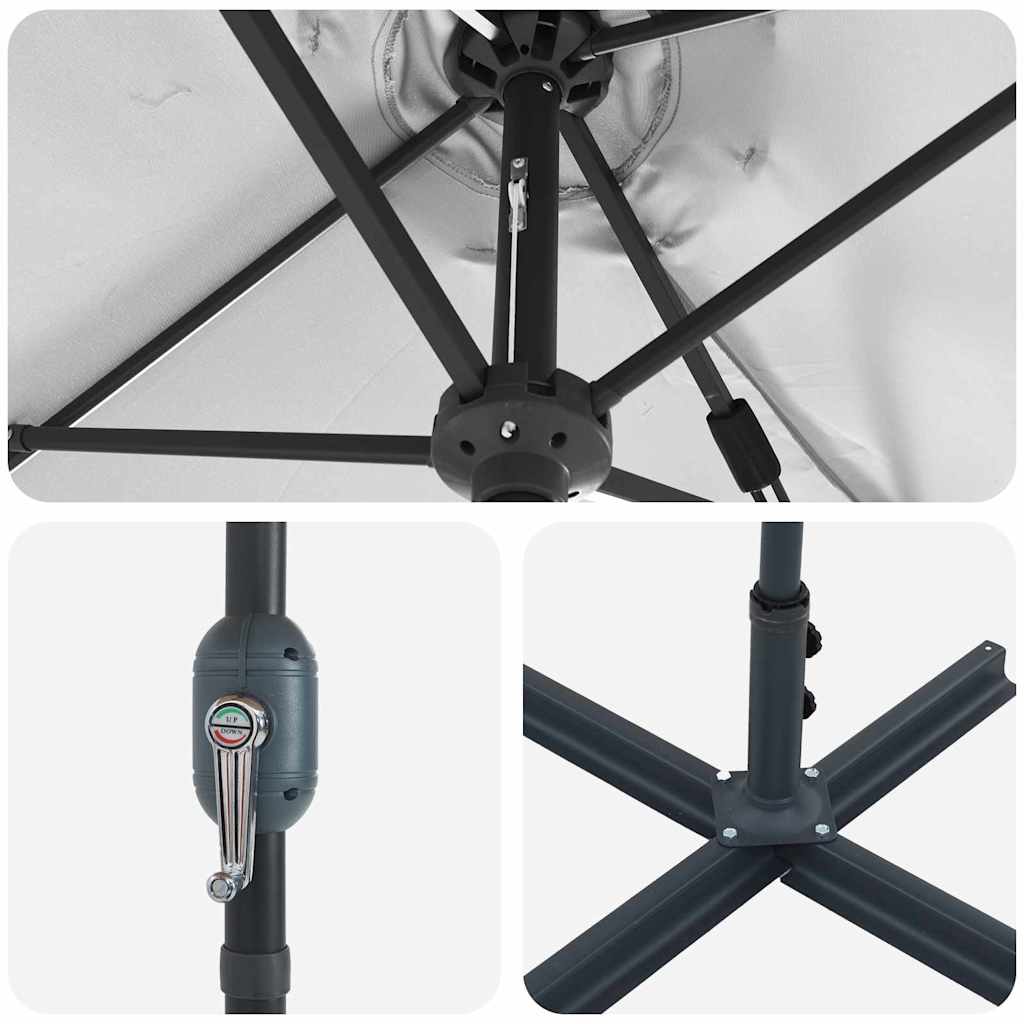 Šis kiemo skėtis puikiai pagerina bet kurią lauko erdvę. Jis praktiškas ir puikiai tinka balkonams, sodams ar terasoms. Su savo moderniu ir švariu stiliumi, jis idealiai tinka prašmatniems lauko valgiams ar tiesiog atsipalaidavimui.