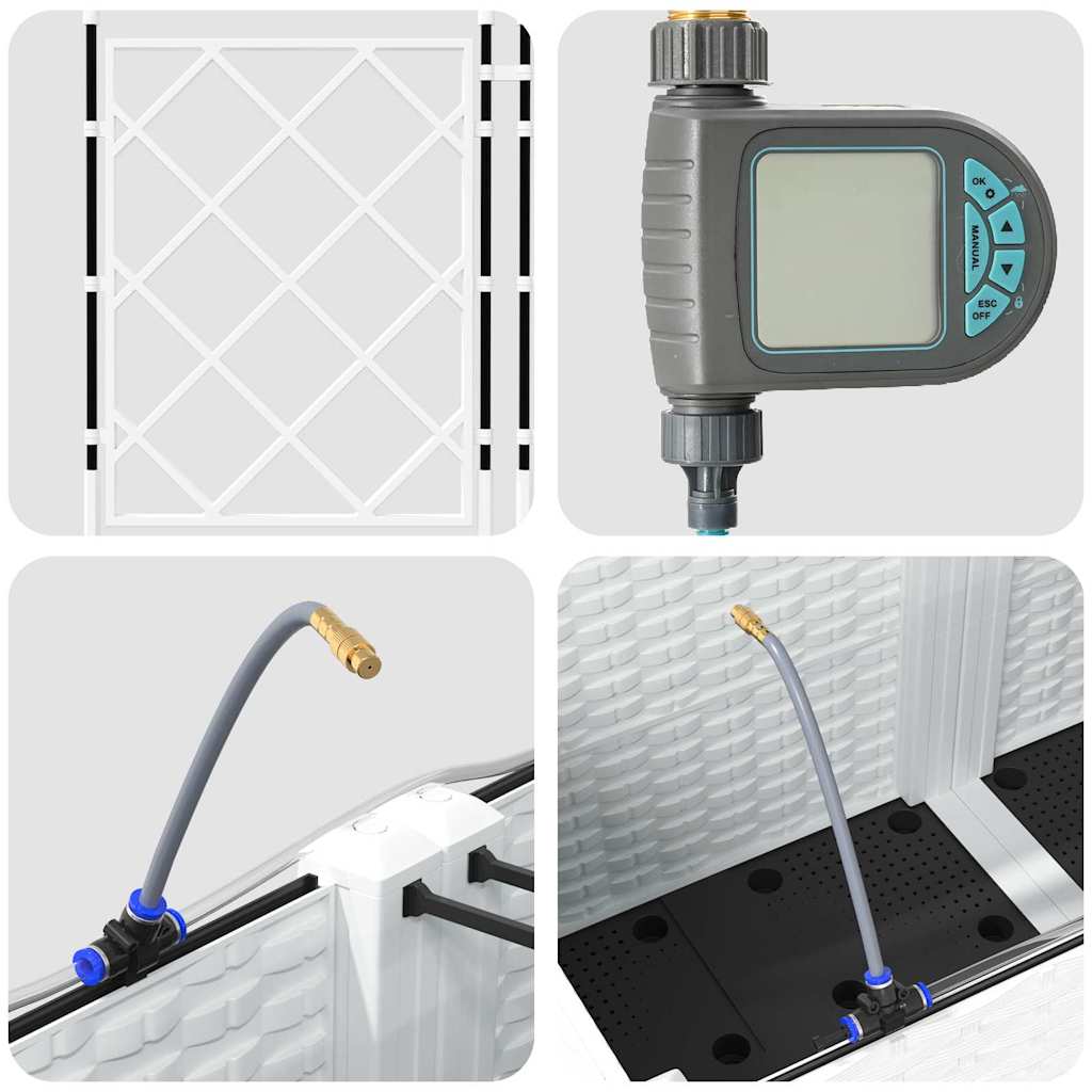 - Integruota laistymo sistema: Šis sodo vazonas, aprūpintas pažangiąja laistymo sistema, pašalina spėliojimus dėl laistymo. Naudodamas integruotas kanalas, jis efektyviai paskirsto vandenį tiesiai į augalų šaknis, užtikrindamas, kad jos gauna pakankamai drėgmės, mažindamas vandens švaistymą ir palaikydamas sveiką augimą.