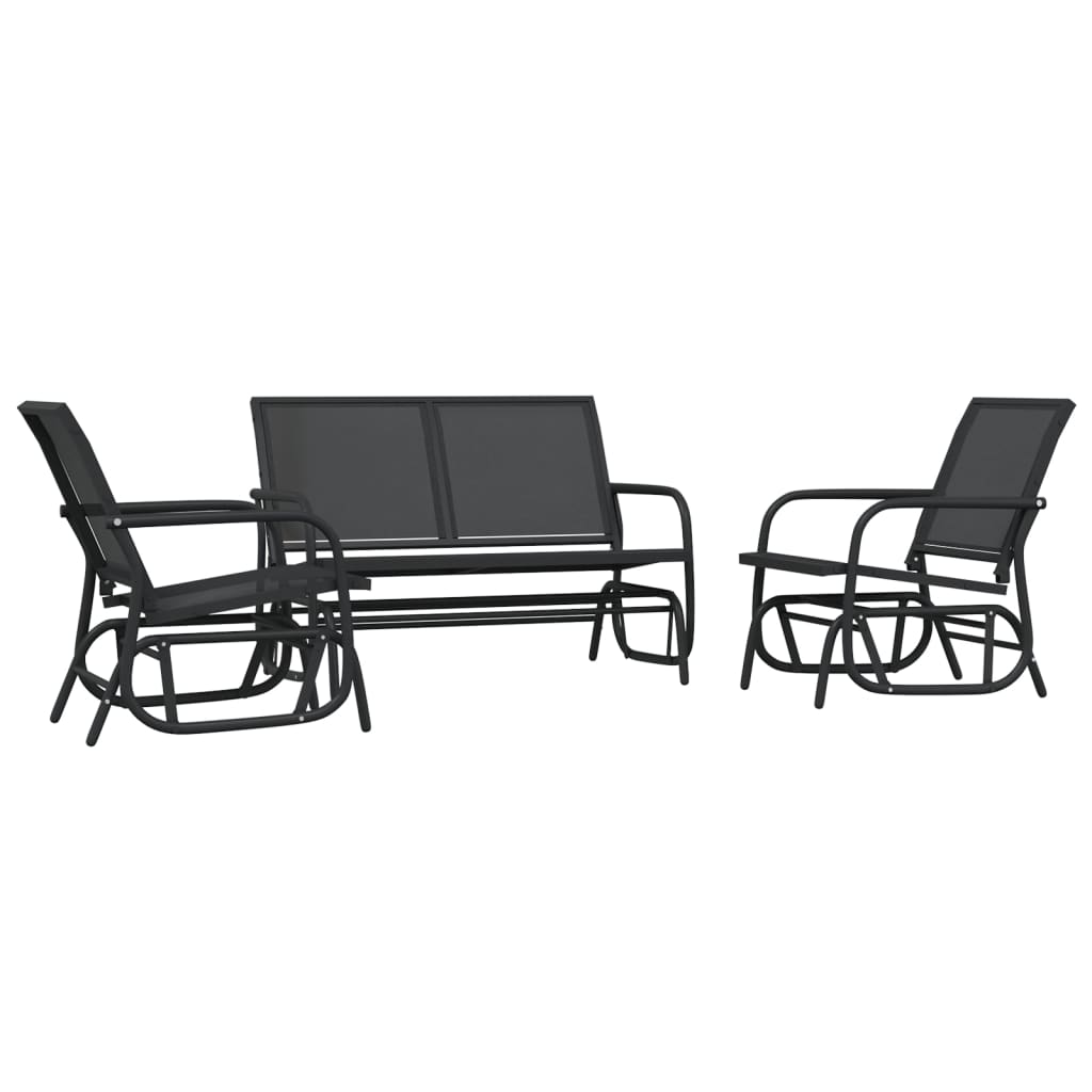 Supamų baldų komplektas, 3 dalių, juodas, tekstilenas/plienas