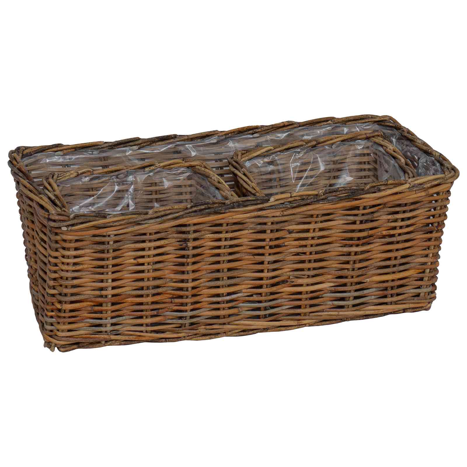 Vazonų krepšys su saugykla 3 pcs Ruda Kubu ratanas