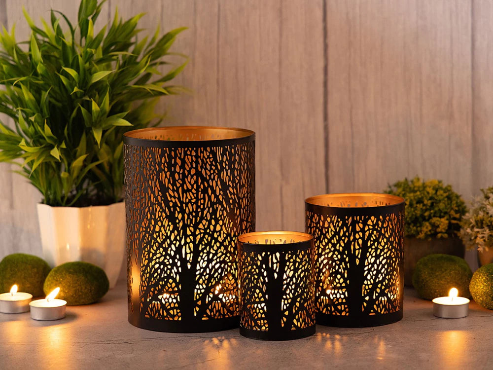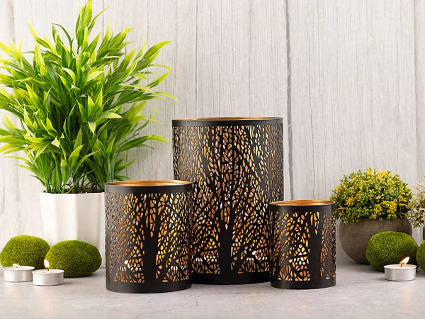 Žibintų rinkinys FOREST (3 žvakidės, juoda–auksinė)