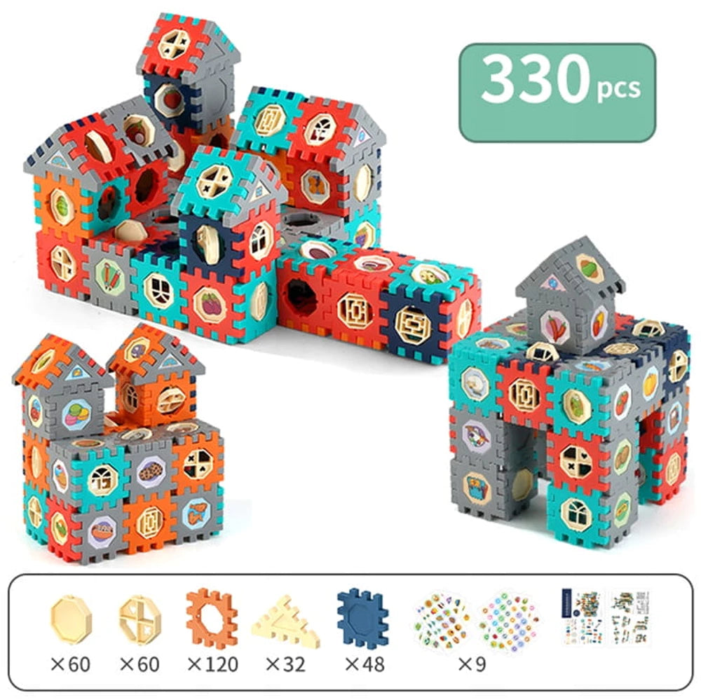 Atraskite kūrybišką ir lavinančią pramogą vaikams! Šis didelis 330 dalių konstruktoriaus kaladėlių rinkinys leidžia sukurti įvairius pastatus, formas ir net sudėtingesnes konstrukcijas.