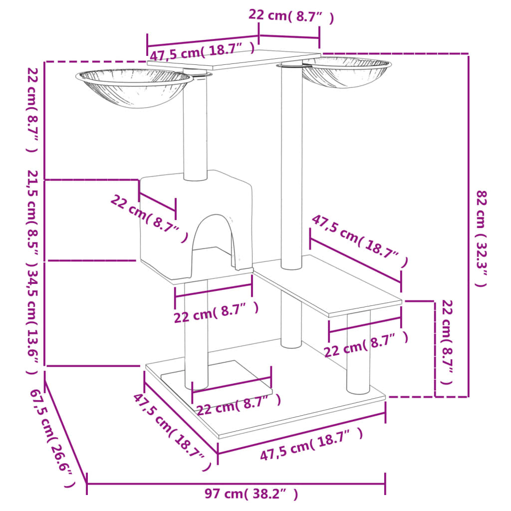 - Viskas viename bokštas katėms: kelių aukštų baldas katėms turi 2 krepšius, namelį ir platformas, tad jūsų katės turės puikią vietą laipioti, tupėti, draskyti, slėptis bei pailsėti.