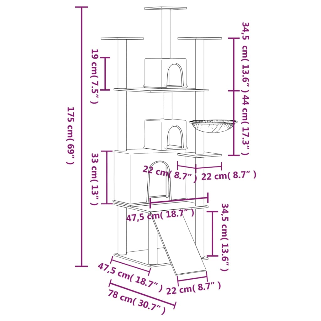 Draskyklė katėms su stovais iš sizalio, tamsiai pilka, 175cm