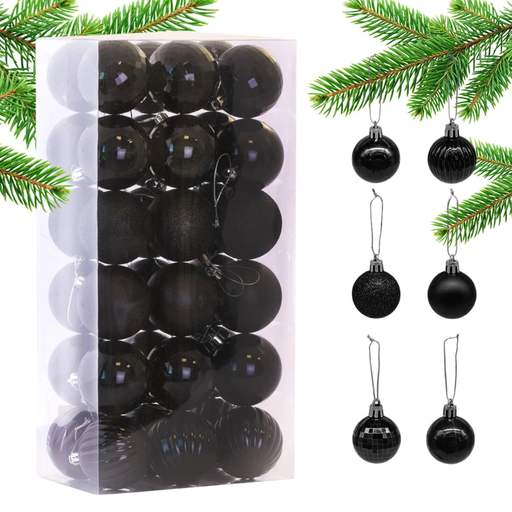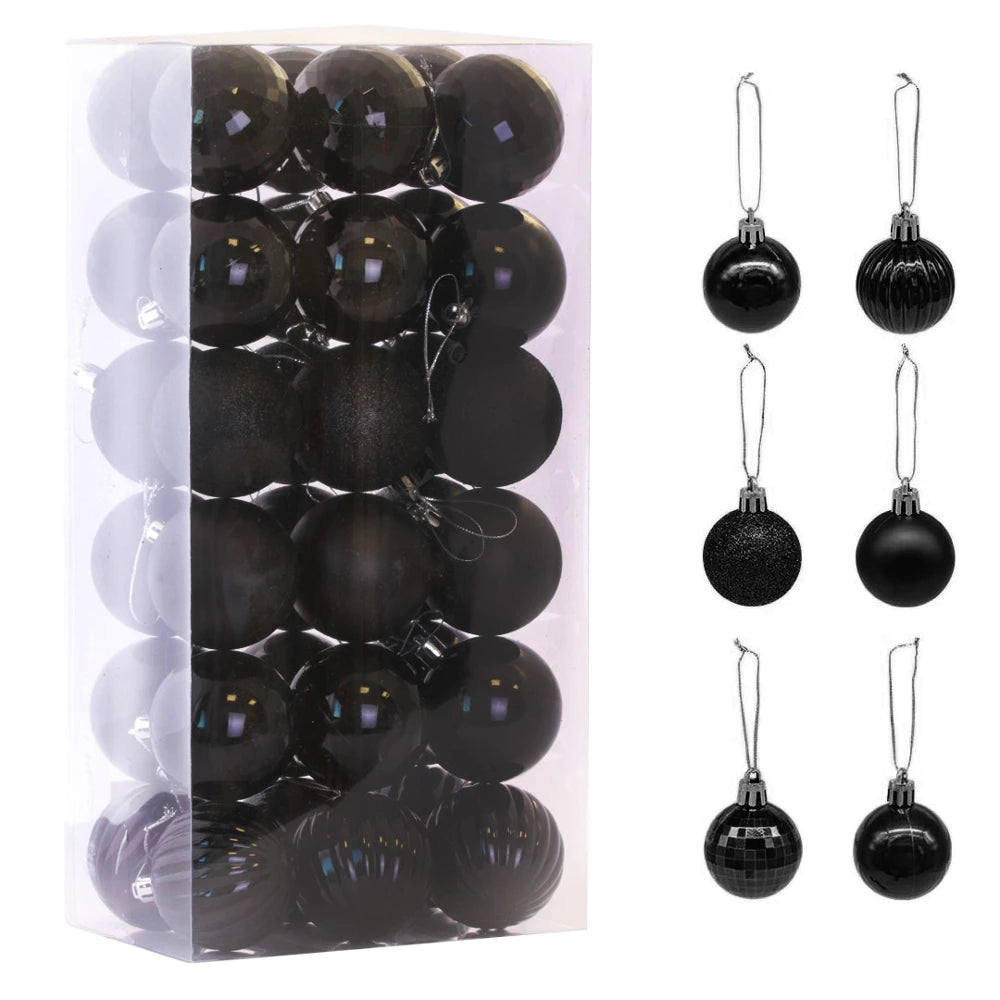 Kalėdinių eglutės žaisliukų rinkinys – 36 vnt., juodos spalvos