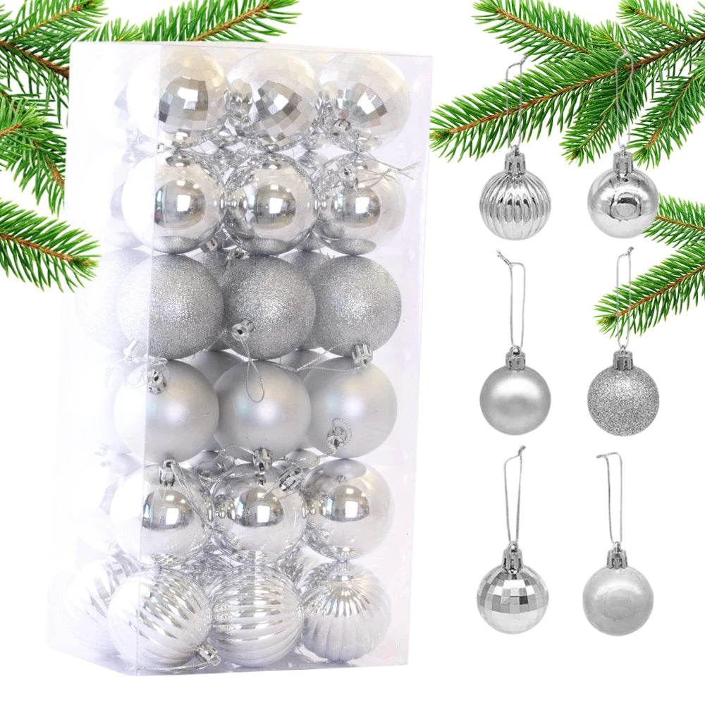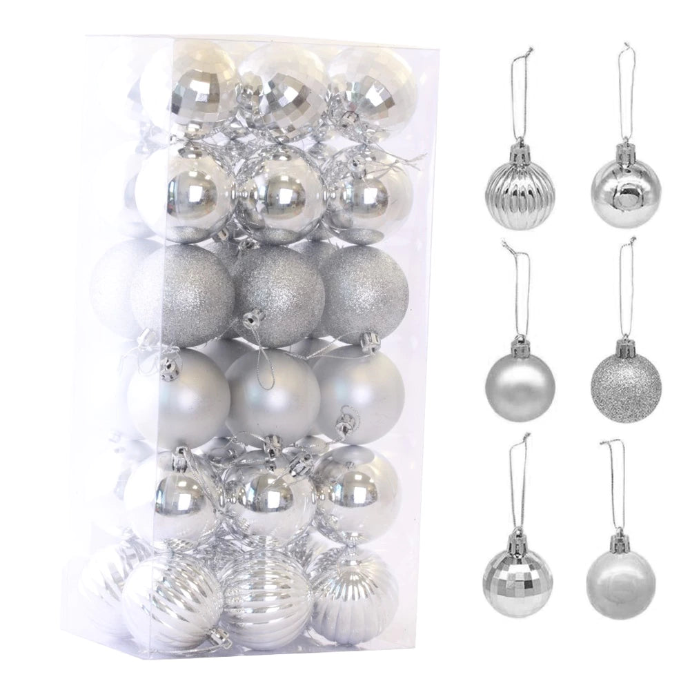 Kalėdinių eglutės žaisliukų rinkinys – 36 vnt., sidabro spalvos