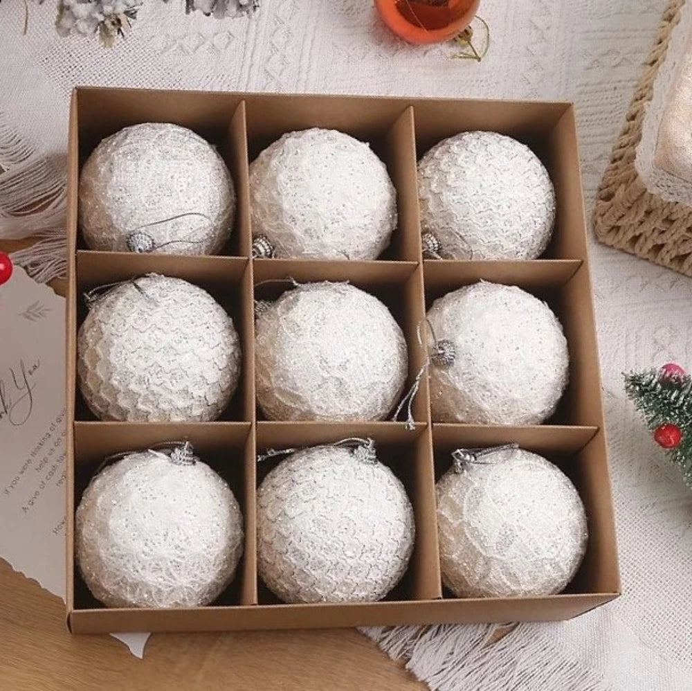 Kalėdinių žaisliukų rinkinys ( 9 vnt. balta)
