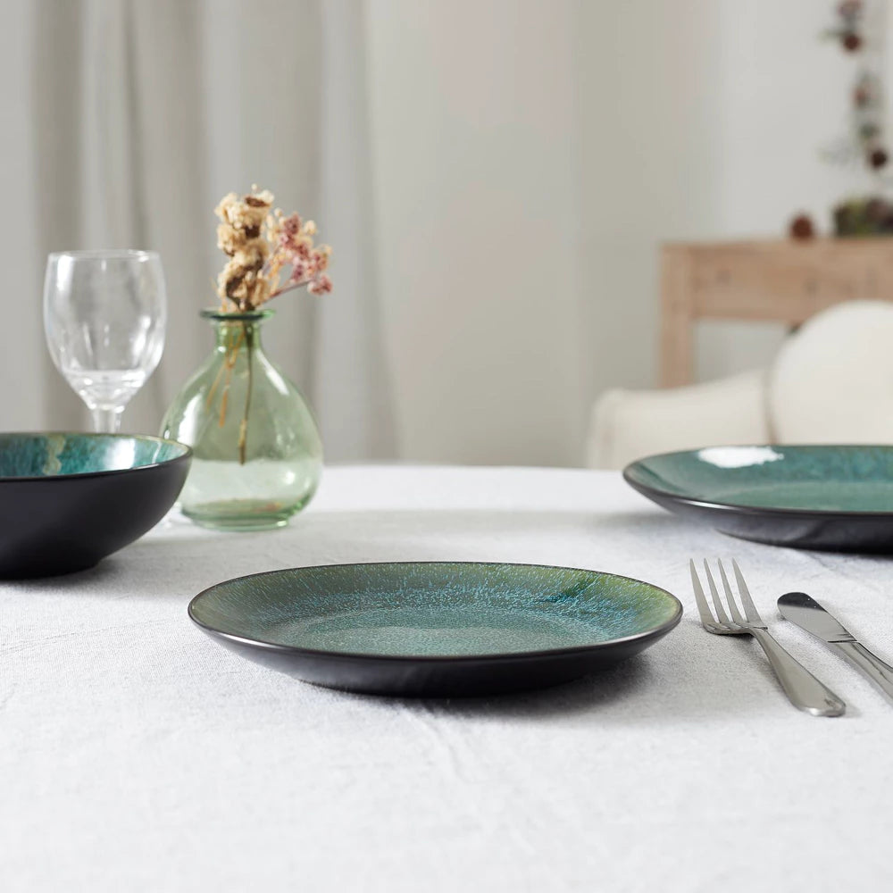 Stilinga ir moderni lėkštė „Elia“ puikiai tinka kasdieniam naudojimui ar ypatingoms progoms. Išskirtinio dizaino juodos ir žalios spalvos derinys suteikia šiai lėkštei charakterio, o akmens masės keramika užtikrina patvarumą ir ilgaamžiškumą.