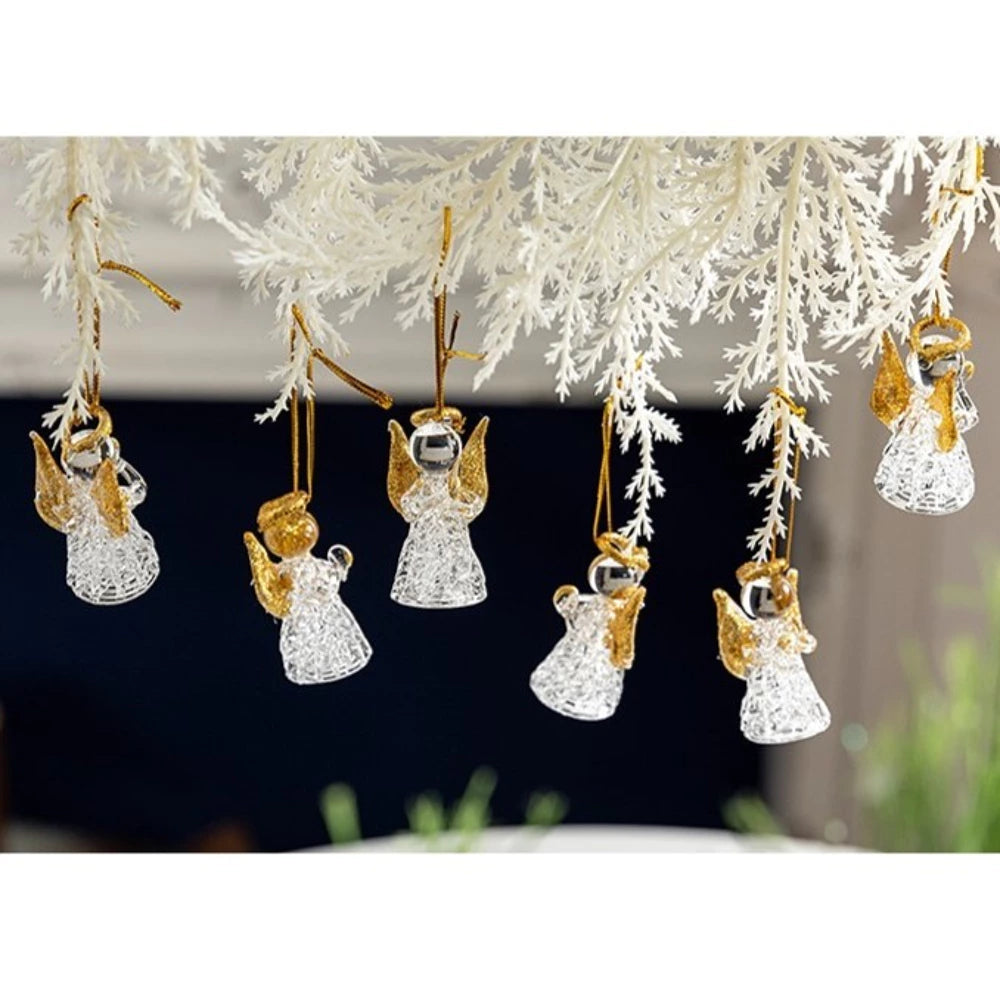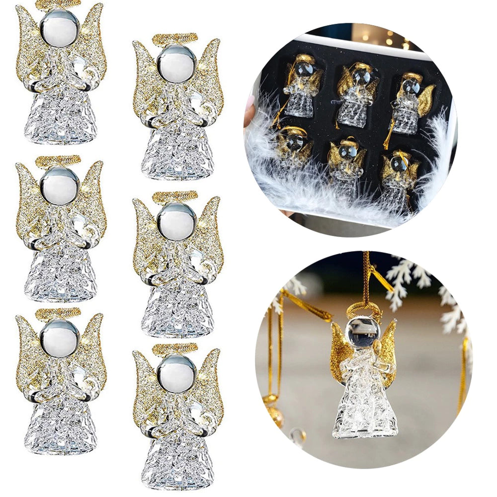 Papuoškite savo Kalėdų eglutę elegantiškais krištoliniais angelais! Šis 6 dalių rinkinys sukuria subtilų, šventinį blizgesį, o skaidrus stiklas su auksinėmis detalėmis suteikia klasikinių ir prabangių akcentų. Tinka kabinti ant eglutės, langų ar kitų dekoratyvinių elementų.