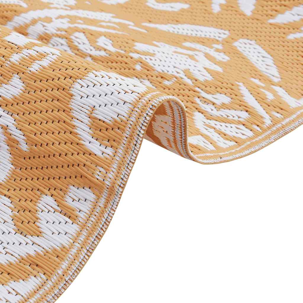 Atsparumas orui: Sukurtas atlaikyti lauko sąlygas, šitas kilimas sulaiko UV spindulius, kad išvengtų saulės pažeidimų. Nesvarbu, ar jis po pergola, ar saulėje, jo spalvos išliks ryškios sezoną po sezono. Jo tvirta prigimtis daro jį stilingu papildymu jūsų erdvėje, neįtakojant temperatūros ar lietaus pokyčiams.