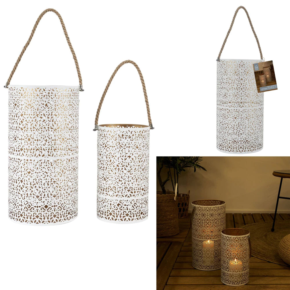 Įneškite šviesos ir elegancijos į savo namus ar lauko erdvę su šiais baltos spalvos, subtiliai paauksuotais metaliniais žibintais „Ajoure“. Dailus ažūrinis raštas leidžia žvakių šviesai sklisti švelniai ir žaismingai, sukuriant jaukią ir stilingą atmosferą.