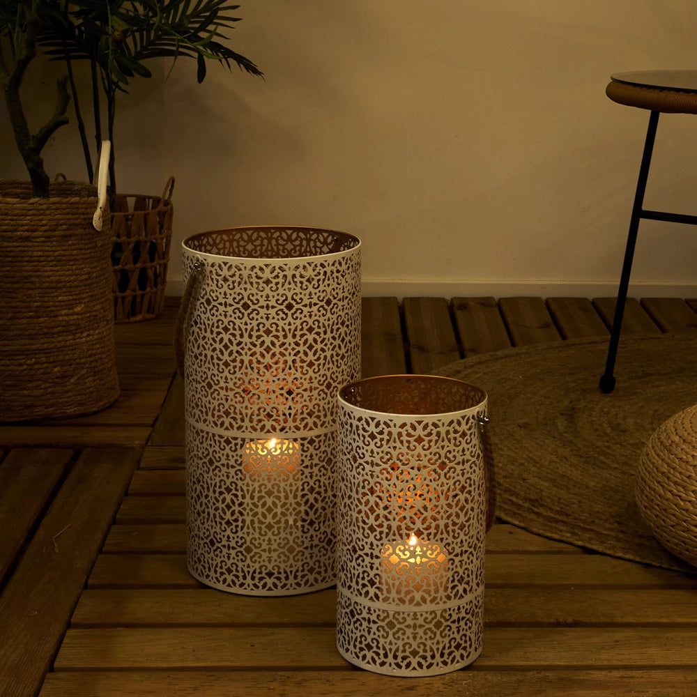 Puikiai tinka naudoti namuose, terasoje, sode ar balkone. Įdėkite žvakę ir leiskite šviesai žaisti pro ažūrinius raštus – rezultatas šiltas, kviečiantis ir romantiškas apšvietimas.