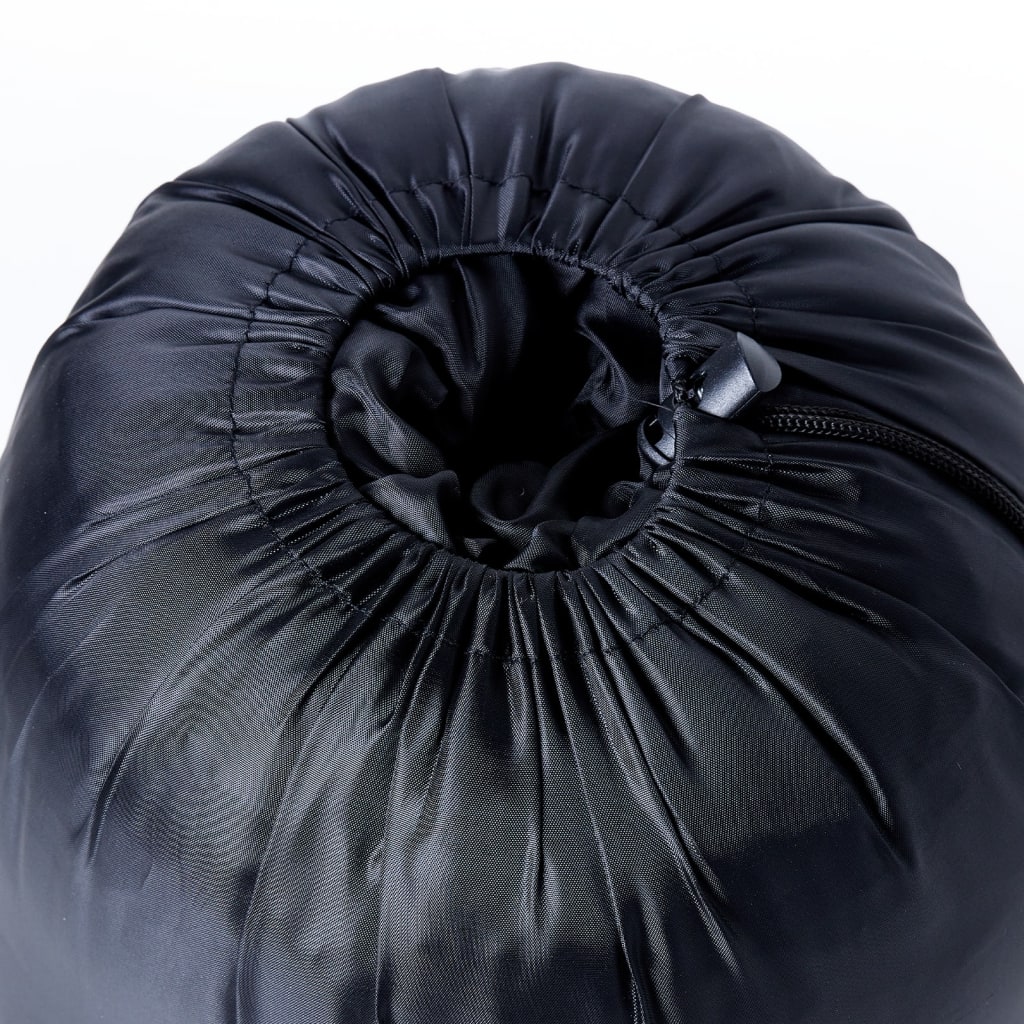 - Dvipusis užtrauktukas: miegmaišis turi dvipusį užtrauktuką, kuris leidžia viduje pagerinti oro srautą ir miegmaišyje paprastai sureguliuoti temperatūrą. Be to, jis turi tvirtinimui skirtus dirželius, kurie neleis užtrauktukui atsisegti.