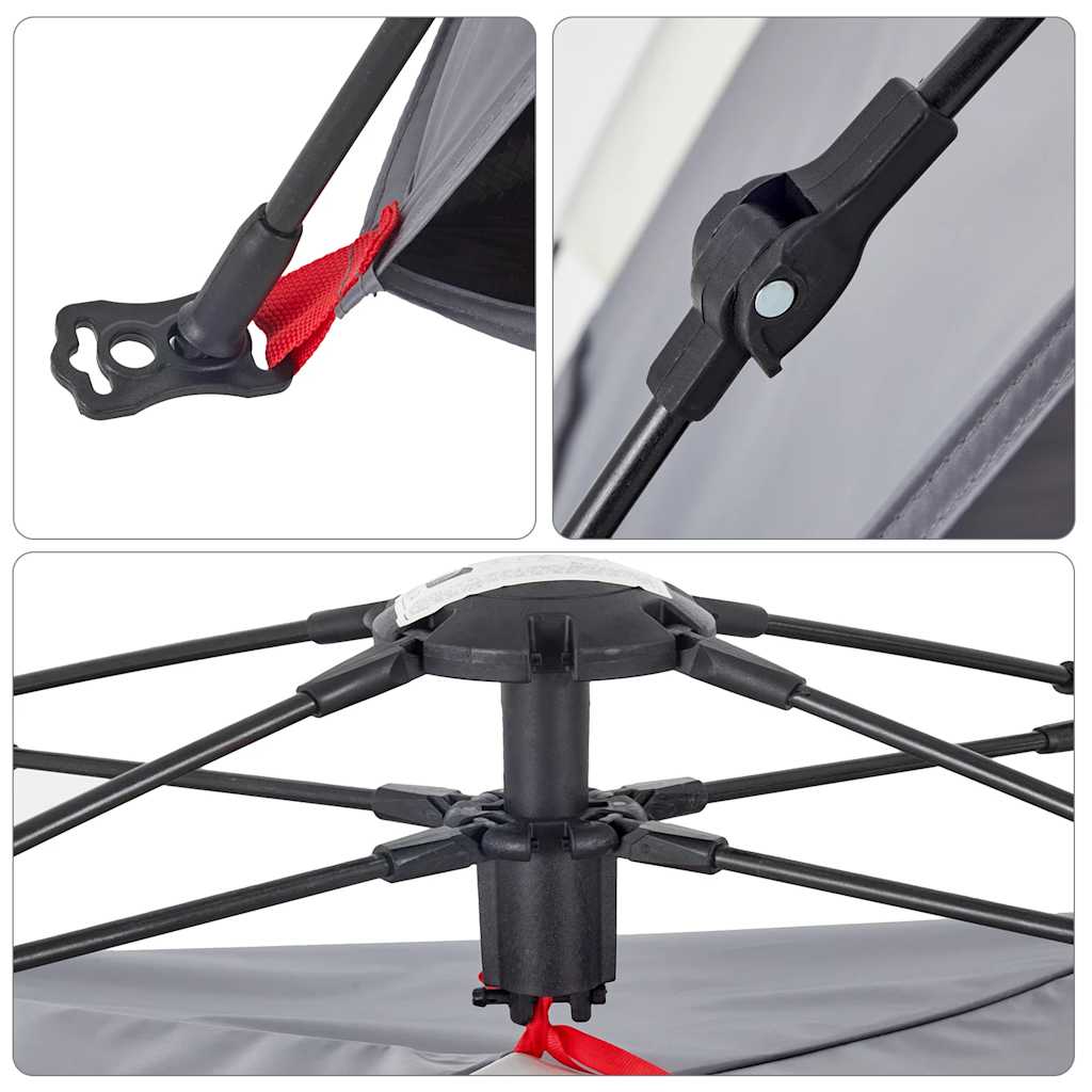 - Greito atleidimo sistema: lengvai pastatykite palapinę su greito atleidimo sistema! Padėkite palapinę, ištraukite iš anksto surinktus lankus iki jie užsifiksuos ir viskas!