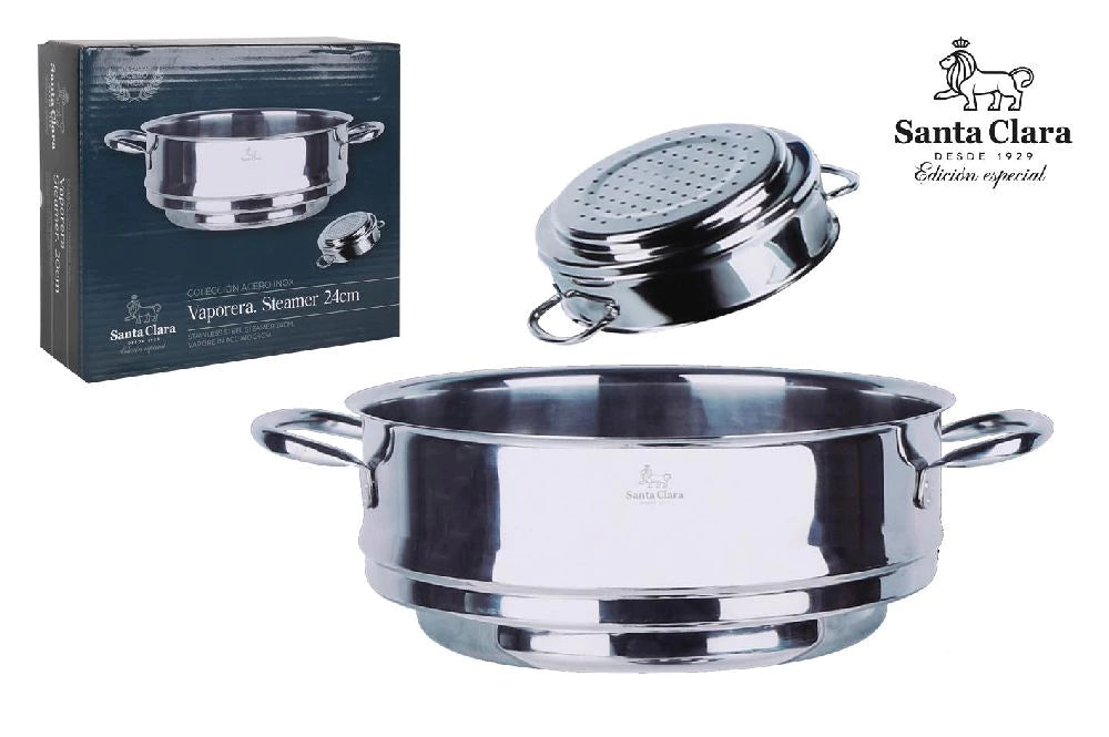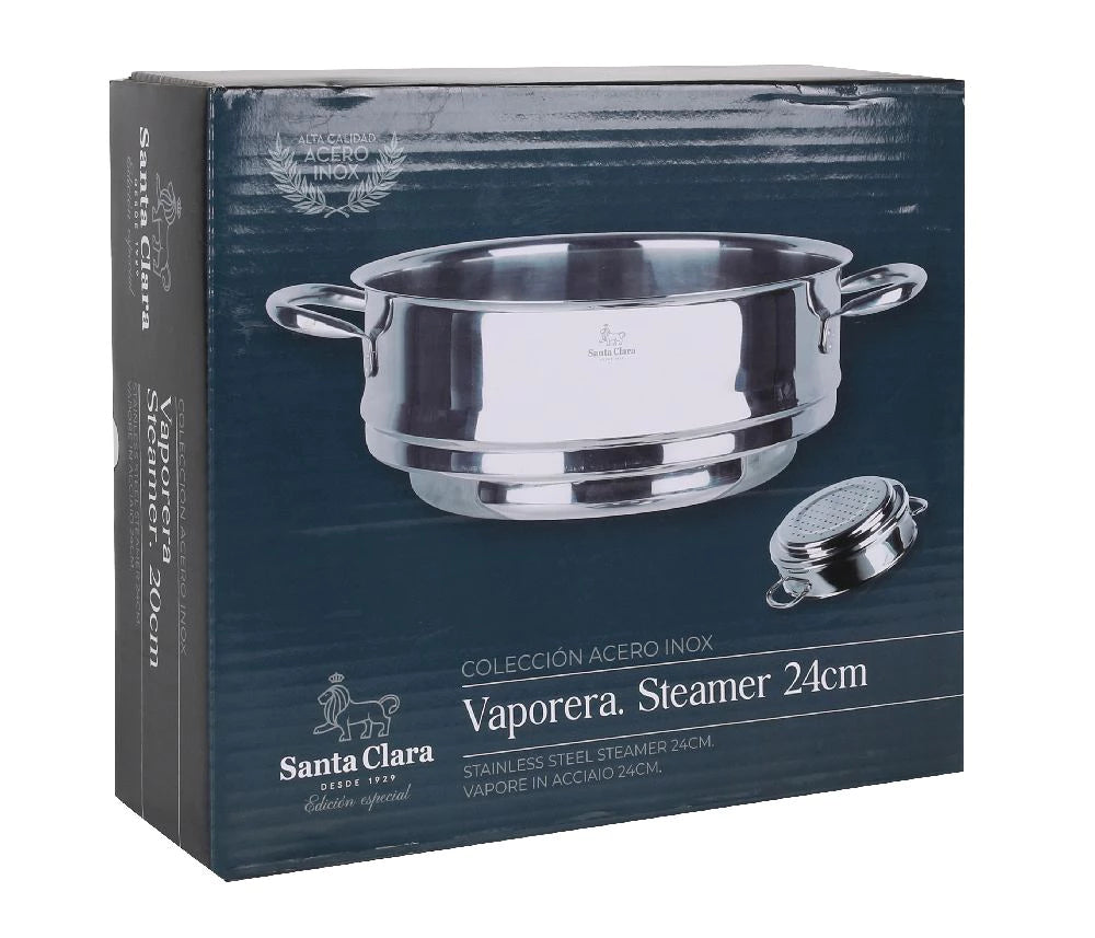 Praktiškas ir kokybiškas Santa Clara garintuvas – puikus pasirinkimas sveikam maisto ruošimui. Dėl 24 cm skersmens jis lengvai telpa ant įvairių puodų ir leidžia garinti daržoves, žuvį, mėsą ar kitus produktus išlaikant jų maistingumą ir skonį. Komplekte esantis dangtis užtikrina efektyvų garų cirkuliavimą ir šilumos išlaikymą.