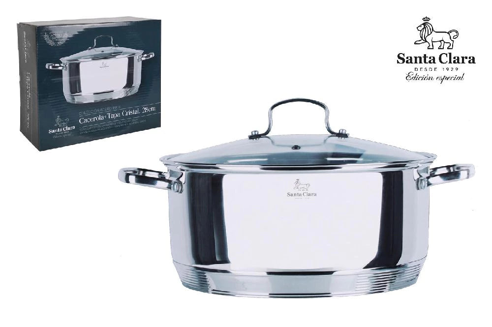 Didelio dydžio ir patvarus Santa Clara puodas – puikus pasirinkimas dideliems patiekalams ruošti. Su 28 cm skersmeniu ir tvirtu dangčiu jis puikiai tinka sriuboms, troškiniams, makaronams ar net desertams gaminti. Pagamintas iš kokybiško plieno, užtikrina tolygų šilumos paskirstymą ir ilgą tarnavimo laiką.