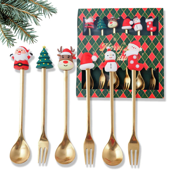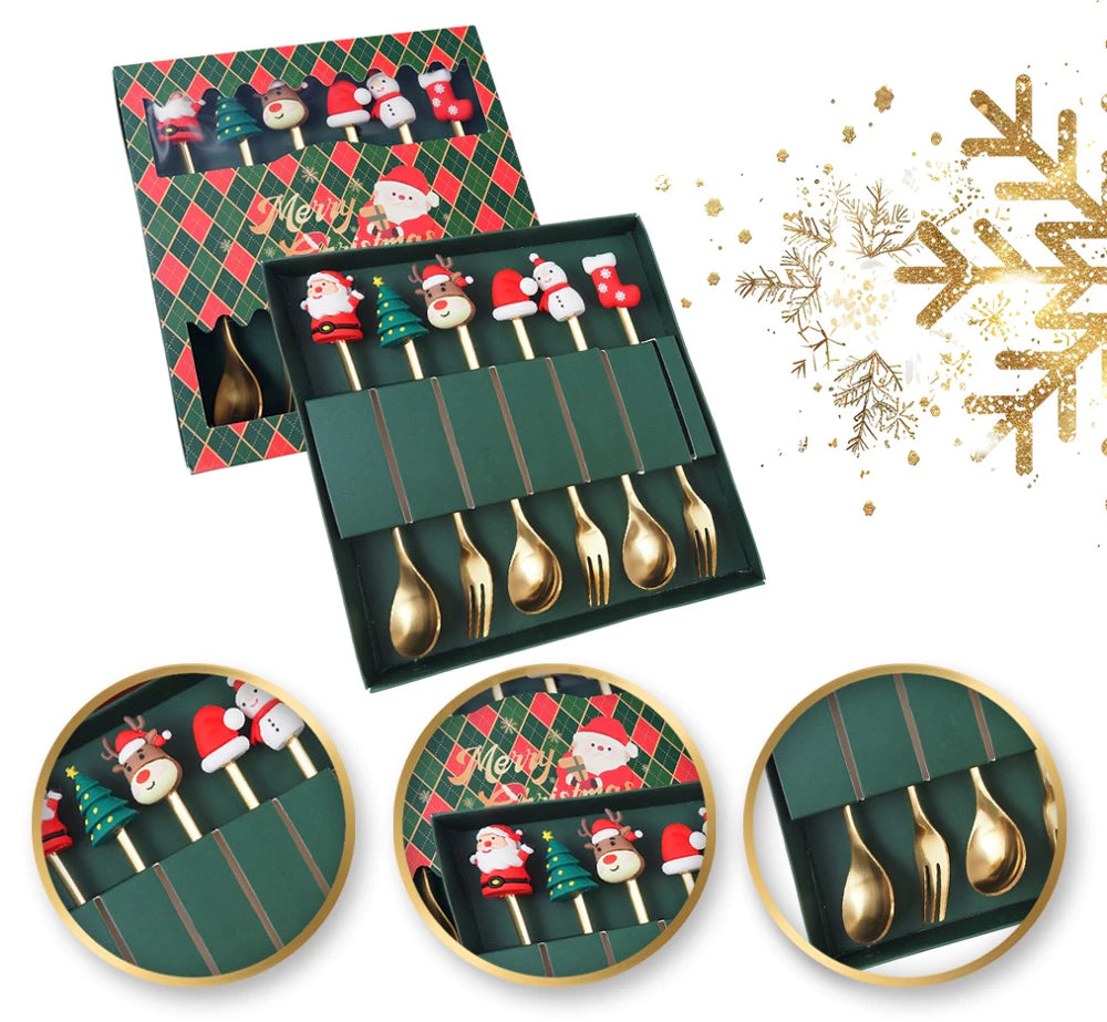 Šaukštelių ir šakučių rinkinys su kalėdinėmis figūrėlėmis (6 vnt.) dėžutėje