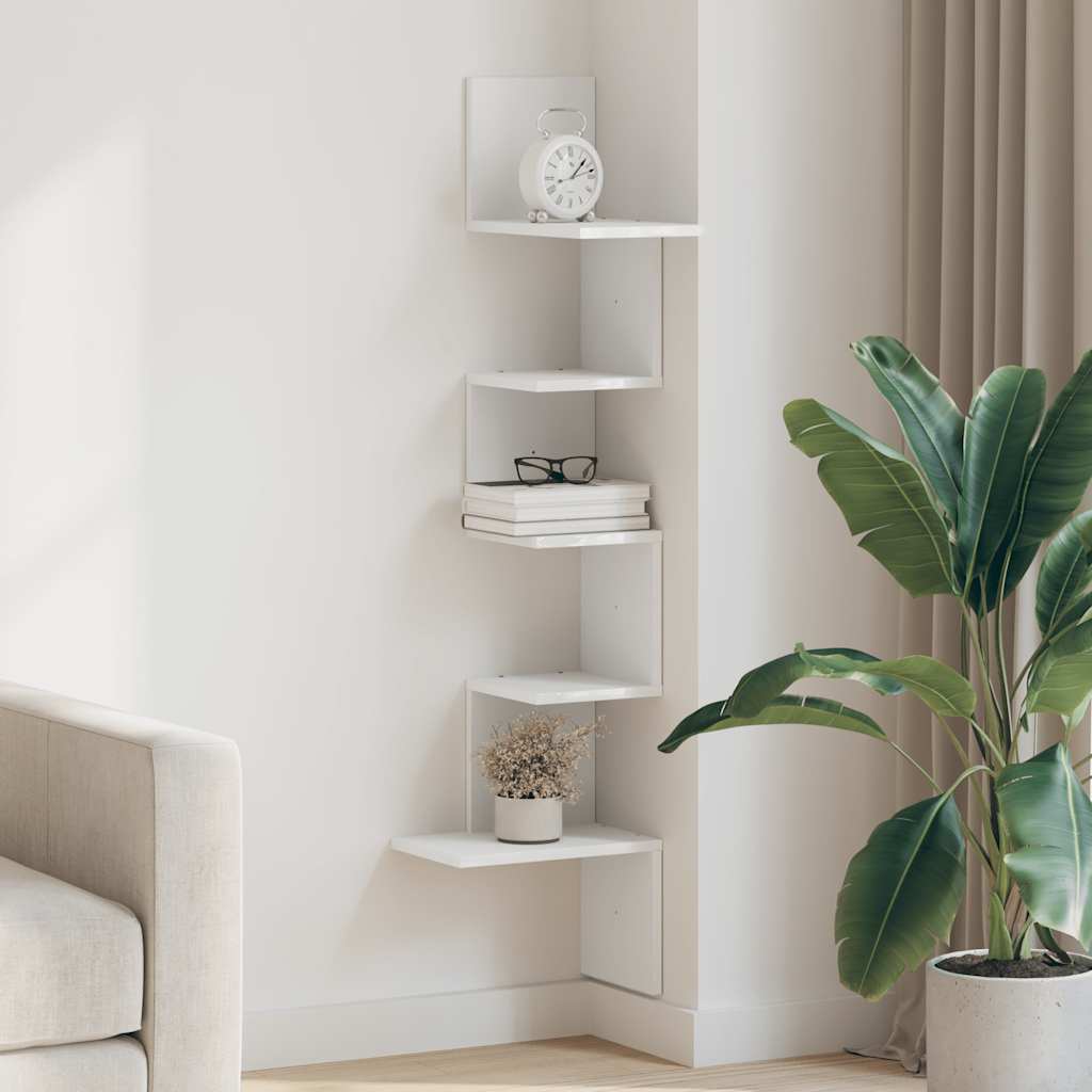 Sieninė kampinė lentyna, baltas, 32x32x127,5cm, mediena