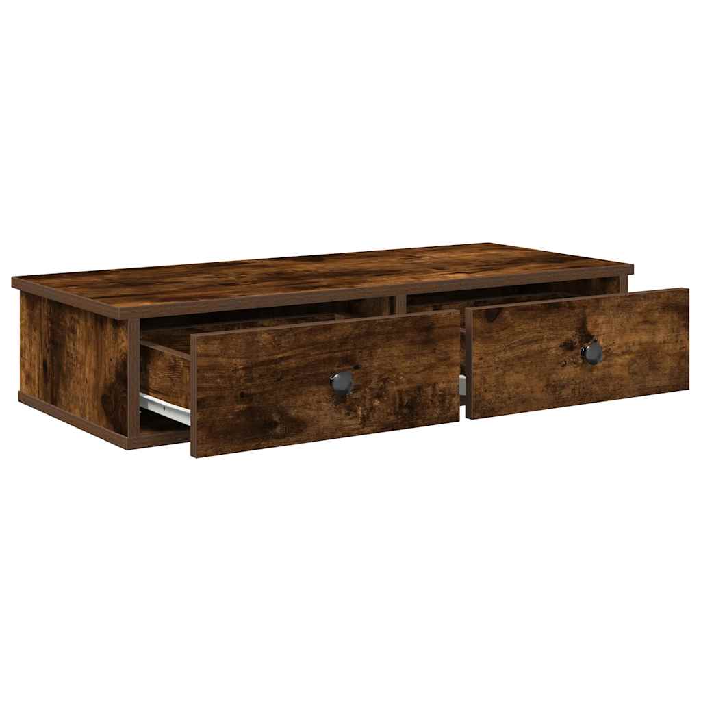 Sieninė lentyna su stalčiais, dūminio ąžuolo, 80x34x17cm