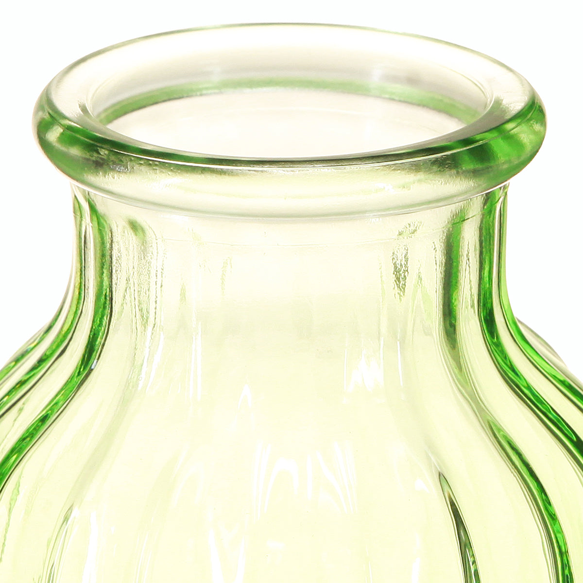 Šios elegantiškos žalios spalvos stiklinės vazos su retro griovelių raštu suteiks Jūsų interjerui vintažinio žavesio. Puikiai tinka mažoms gėlių kompozicijoms, stalo ar palangės dekoravimui, ypač pavasario ir vasaros sezonams.
