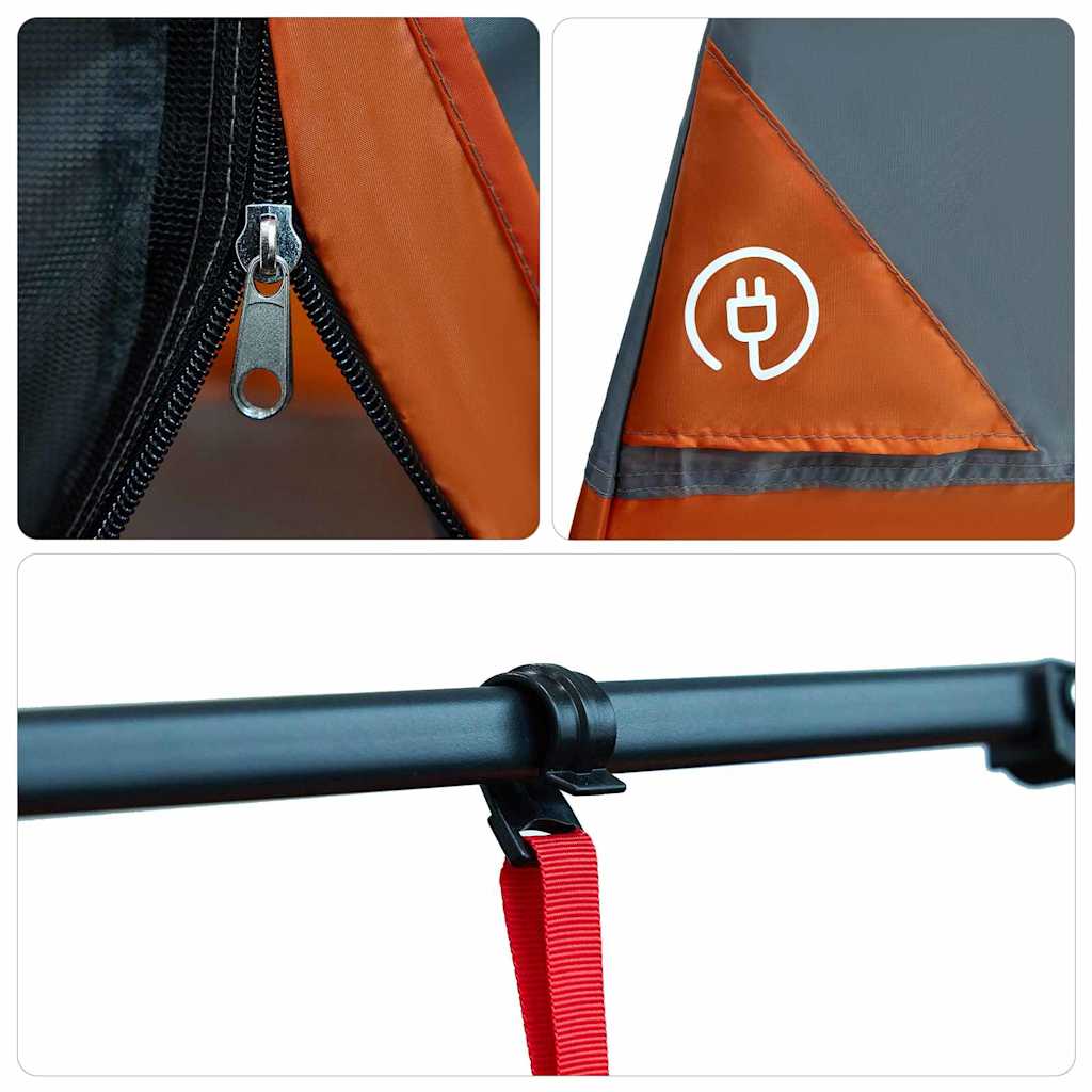 - Įtraukiami komponentai: Palapinė turi tvirtą užtrauktuką, kad galėtum lengvai patekti vidun ir jaustis komfortiškai. Be to, bešuvė konstrukcija leidžia greitai ir be vargo pereiti vidun ir lauk. Su transportavimo krepšiu lengva susipakuoti ir keliauti.