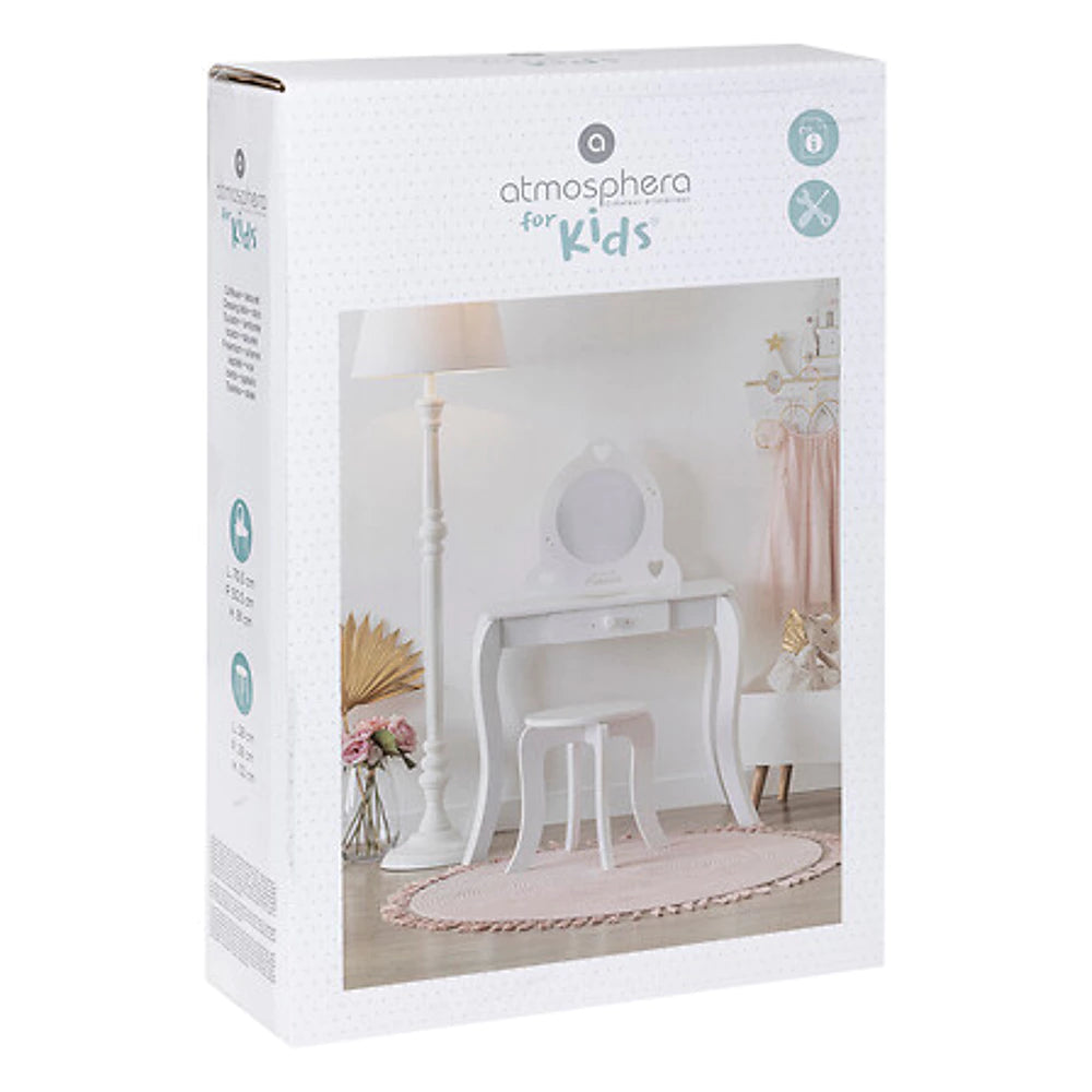 Šis makiažo staliukas su kėdute ne tik papuoš kambario interjerą, bet ir taps mylimu žaidimų kampeliu, kuriame kiekviena mažoji princesė galės jaustis kaip tikra grožio ekspertė.