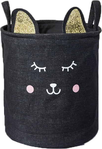 Stilingas ir funkcionalus žaislų krepšys bei skalbinių maišas su žaismingu juodo katino dizainu – praktiškas sprendimas palaikyti tvarką namuose. Puikiai tinka vaikų kambariui, voniai ar kitoms erdvėms, kuriose reikia patogaus daiktų laikymo.