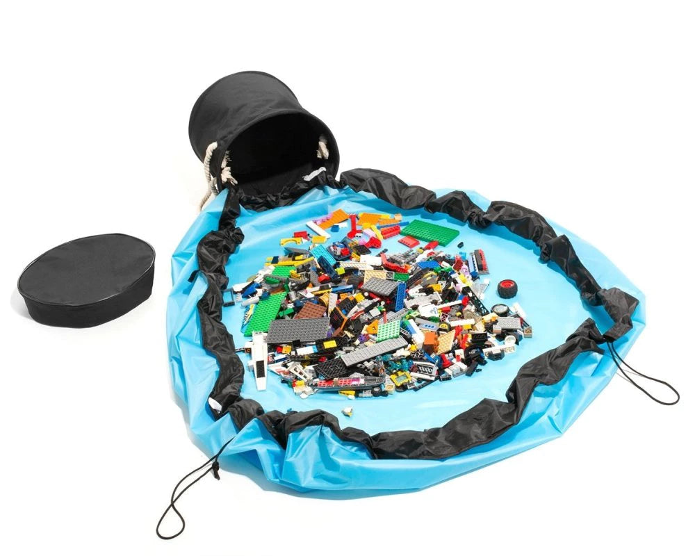 Žaislų krepšys su 2in1 žaidimų kilimėliu – MĖLYNAS