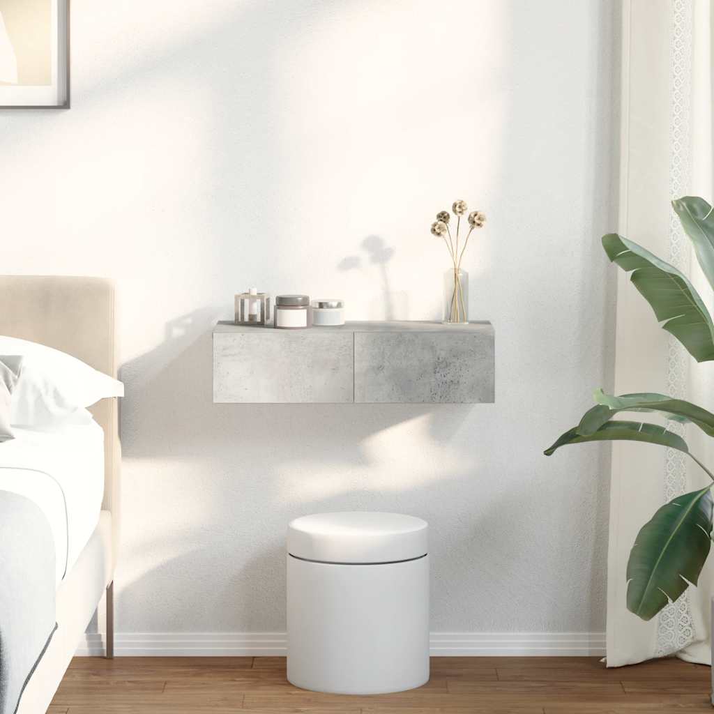 Sieninė lentyna su stalčiais, betono pilka, 60x26,5x15cm